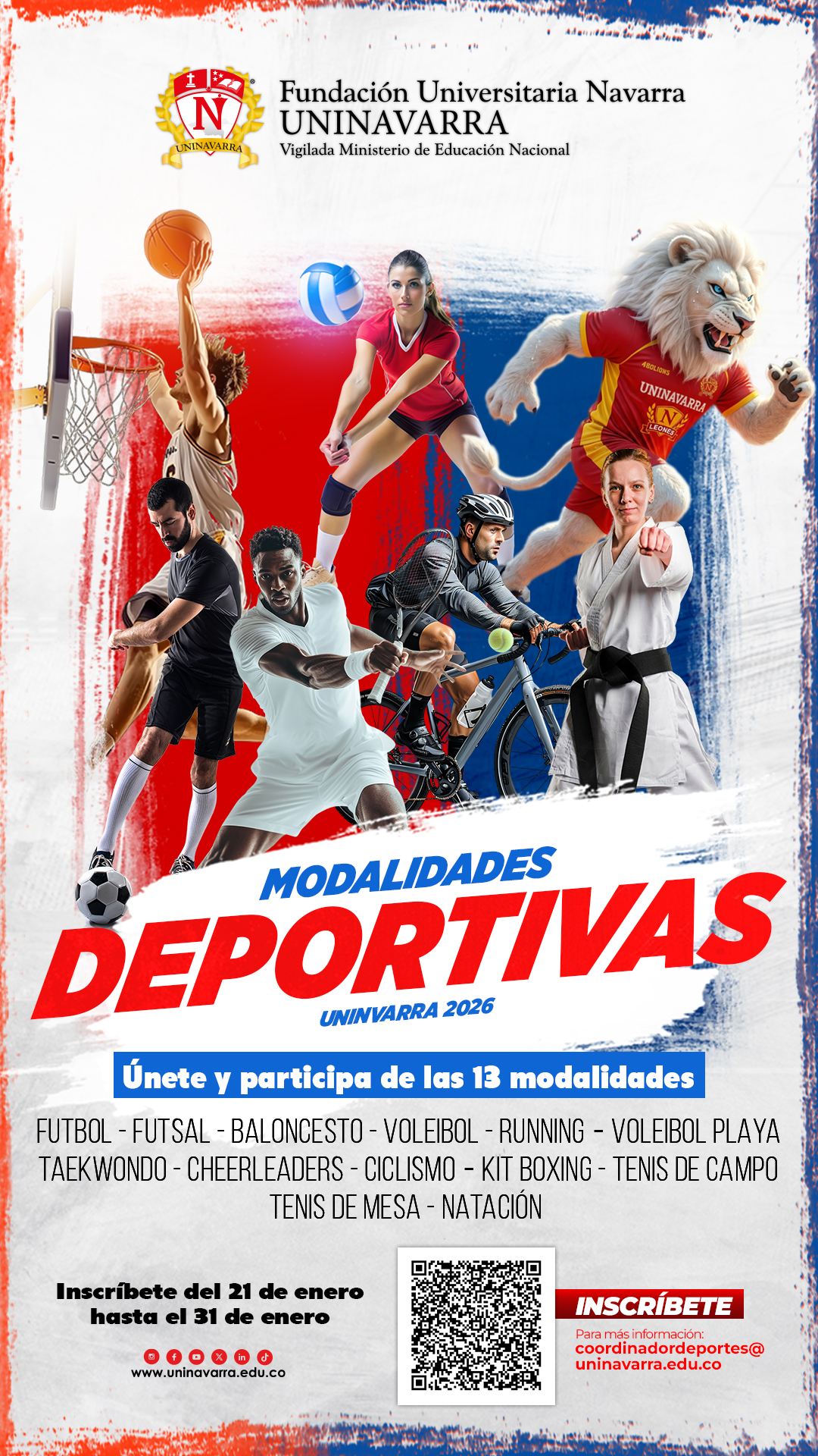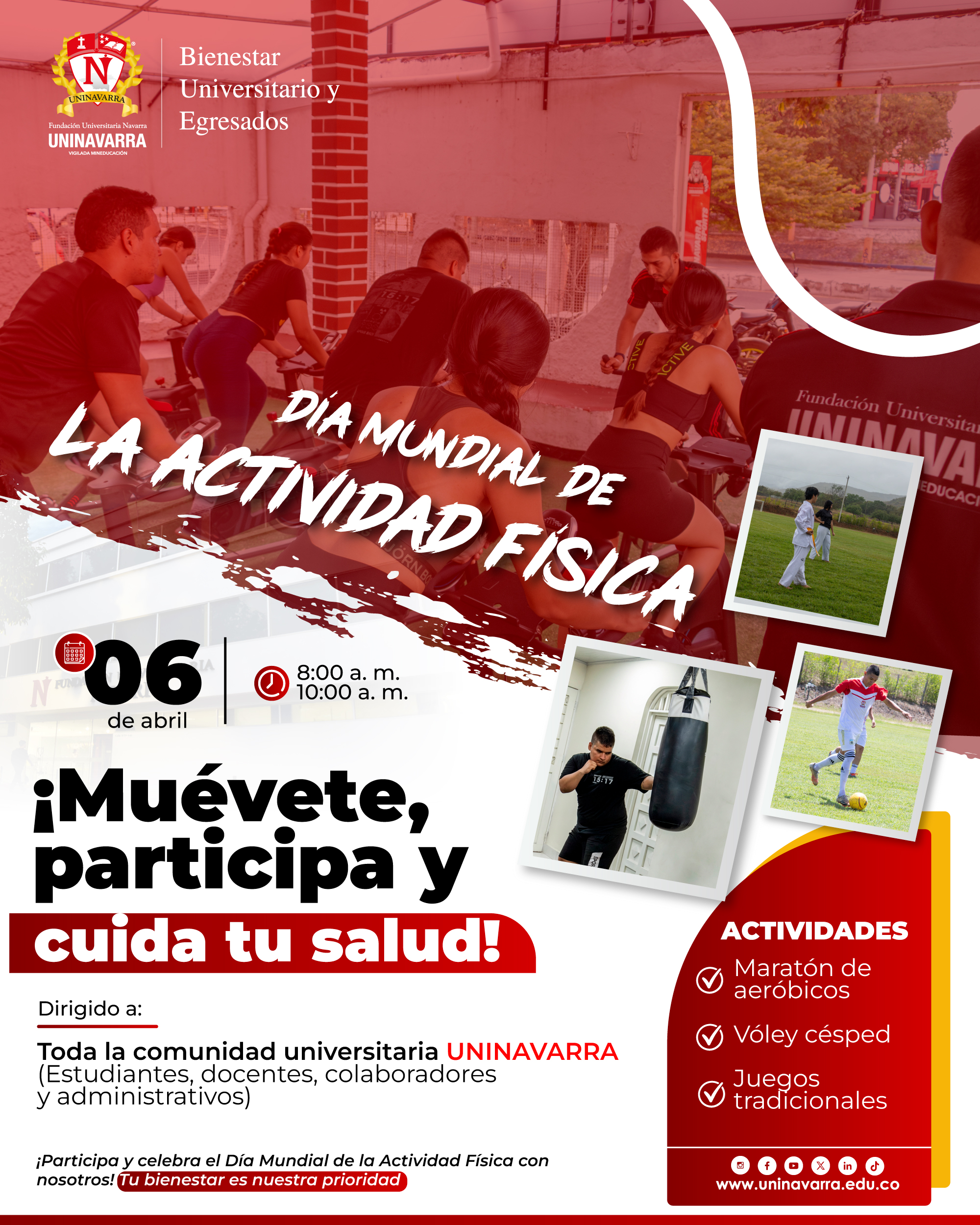 ANUNCIOS DEPORTIVOS Home /Bienestar Universitario/Deporte y recreación/Deporte y recreación Consentimiento informado - menor de edadConsentimiento informado - mayor de edadSeleccionadas del grupo cheerleaders DEPORTE Y RECREACIÓN Actividades Lúdico - Recreativo Actividades lúdico - recreativas y deportivas Disciplinas deportivas Formación de las modalidades deportivas UNINAVARRA Sports Gym UNINAVARRA Sports Gym Participación externa Participación externa HORARIOS DE LAS MODALIDADES DEPORTIVAS