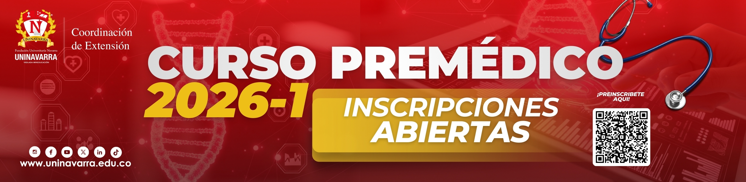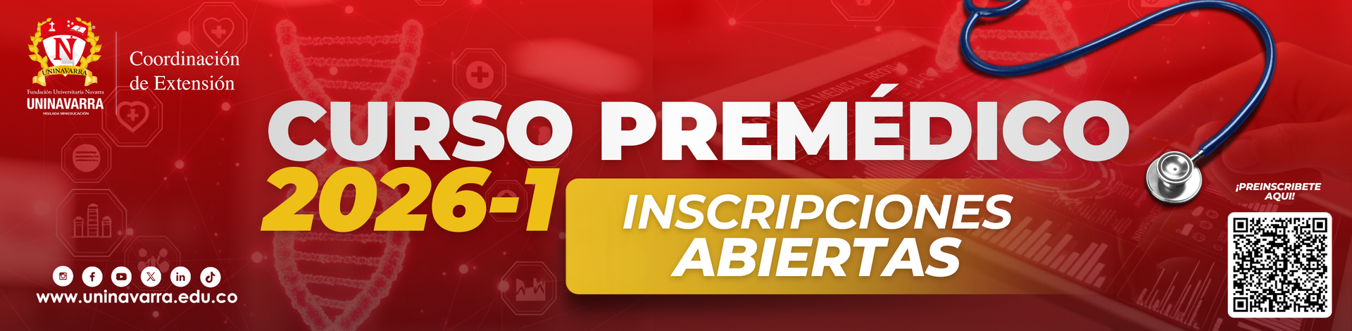 El curso Premédico tiene como objetivo principal brindar a los bachilleres la posibilidad de definir en primer término su vocación universitaria en las Ciencias de la Salud y además adquirir destrezas para enfrentar de nuevo las pruebas saber pro y las específicas de las instituciones universitarias que les permita la posibilidad de ser admitidos e ingresar a los programas de medicina. En el caso específico de UNINAVARRA los estudiantes que cursen y aprueben el Preuniversitario, con promedio mínimo de cuatro (4), en todas las asignaturas y aspiren a ingresar al programa de Medicina en el periodo académico respectivo, se les asignará el máximo puntaje en el EXAMEN de CONOCIMIENTOS QUE ES REQUISITO PARA LA ADMISIÓN.El Premédico es un curso dirigido a estudiantes bachilleres, estudiantes de grado once y aquellas personas que estén interesadas en prepararse para ingresar a un programa en el área de la salud. Quienes cursen este Premédico tendrán la oportunidad de orientar su vocación profesional, profundizar y fortalecer los conocimientos necesarios para ingresar a un programa en temáticas como biología, química, investigación, biofísica, entre otras que forman parte de esta importante área de conocimiento.
